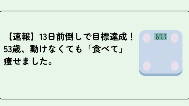 痛風ケア 【速報】13日前倒しで目標達成!53歳、動けなくても「食べて」痩せました。 2026年3月25日 安佳里 やりました!本日帰宅後の体重 67.7kg。 4月6日に設定していた目標を、なんと13日も前倒しでクリアしてしまいました! 5 …