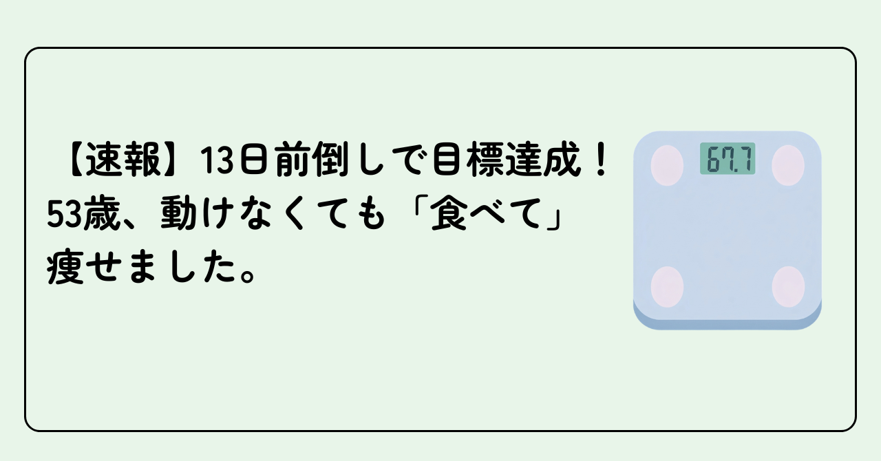 【速報】13日前倒しで目標達成!53歳、動けなくても「食べて」痩せました。