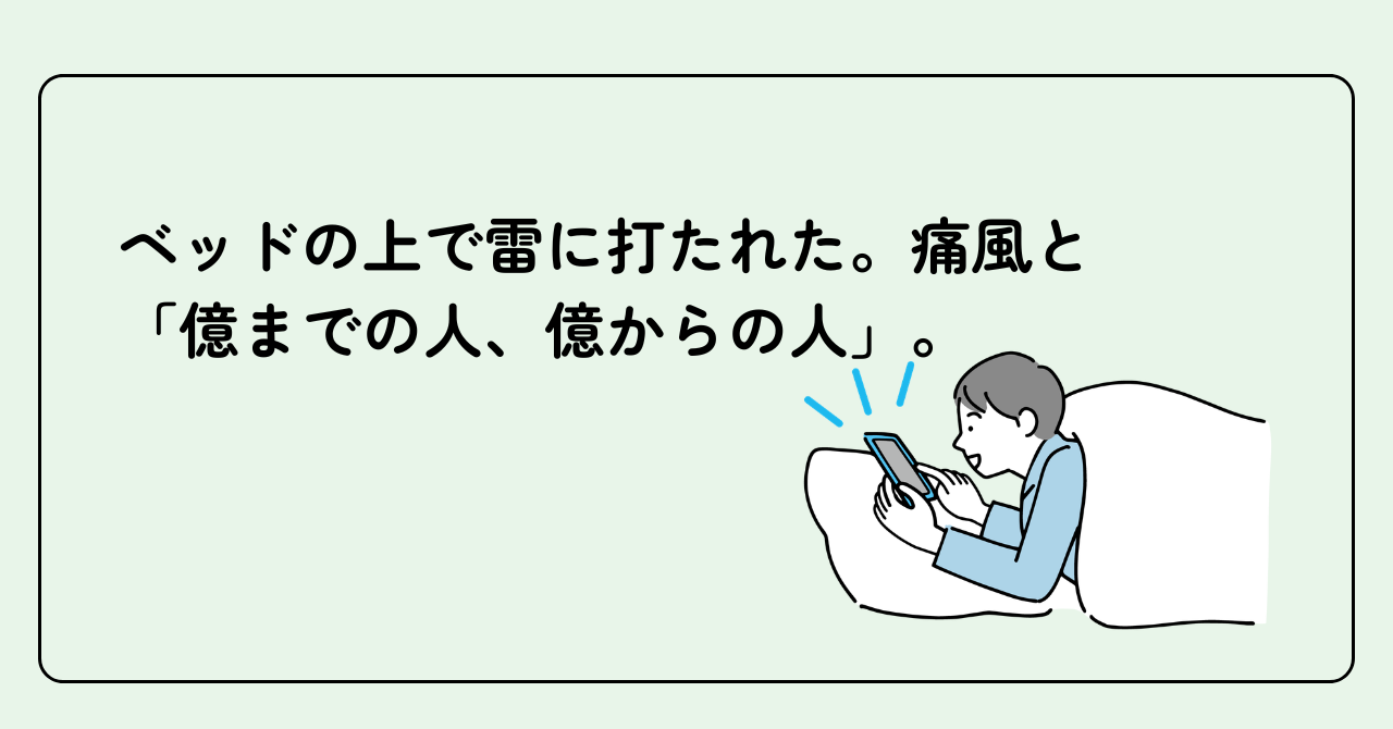 ベッドの上で雷に打たれた。痛風と「億までの人、億からの人」。