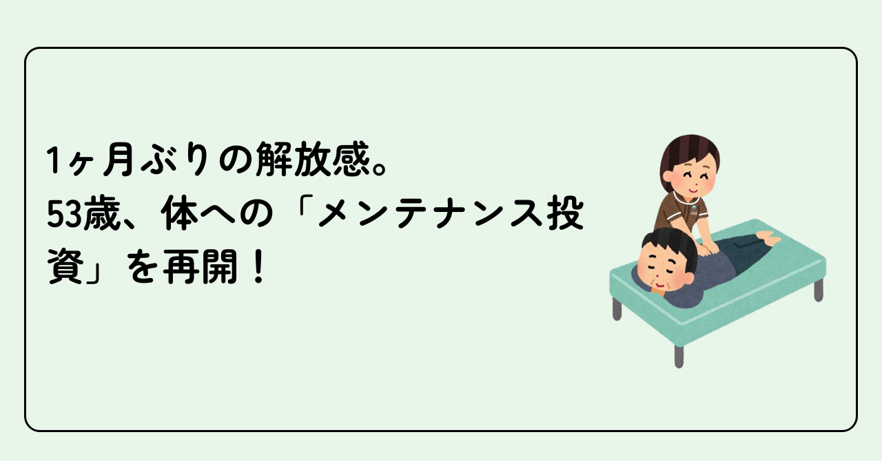 1ヶ月ぶりの解放感。53歳、体への「メンテナンス投資」を再開!