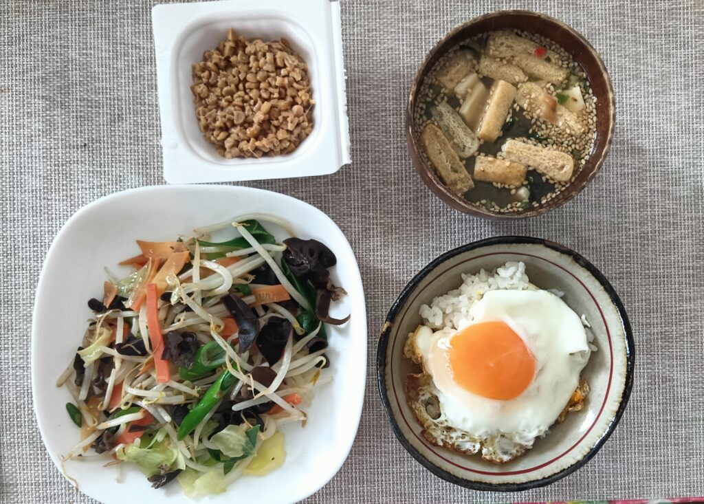 - 汁物: タンパク質の王者・高野豆腐をたっぷり入れたお味噌汁