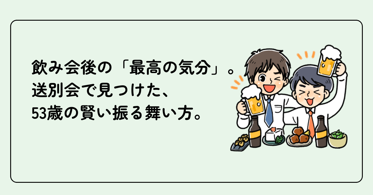 飲み会後の「最高の気分」。送別会で見つけた、53歳の賢い振る舞い方。